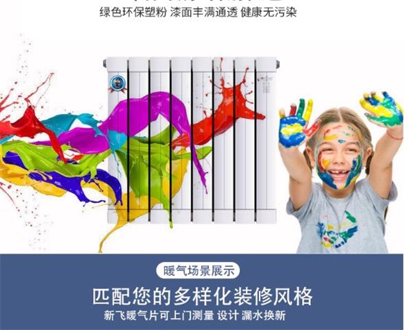 以上兩方面來了解兒童暖氣片的選購相關知識,另外我們還要支持做到:安全、環(huán)保、外形設計、顏色搭配四項基本原則,為兒童營造一個舒適、快樂、奔放、童趣的生活空間。新飛散熱器采用環(huán)氧樹脂粉末靜電噴涂技術,漆面穩(wěn)定性好,顆粒細膩,噴涂均勻,表面美觀怡人,流光溢彩;并采用純綠色環(huán)保塑粉漆,漆面豐滿通透,健康無污染。